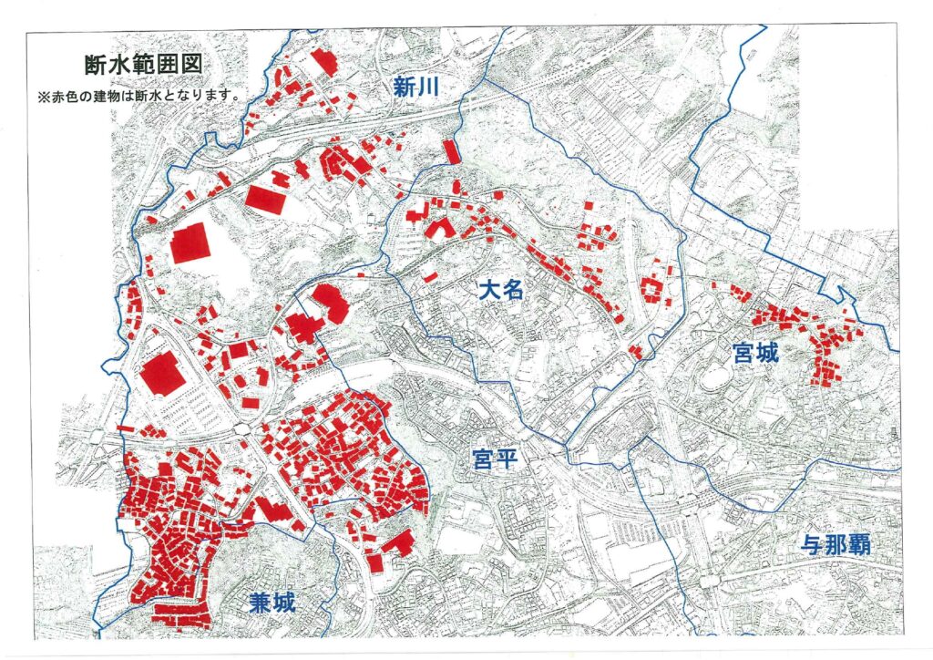 この工事に伴い、南部水道企業団管内の南風原町一部地域において断水が発生いたします。