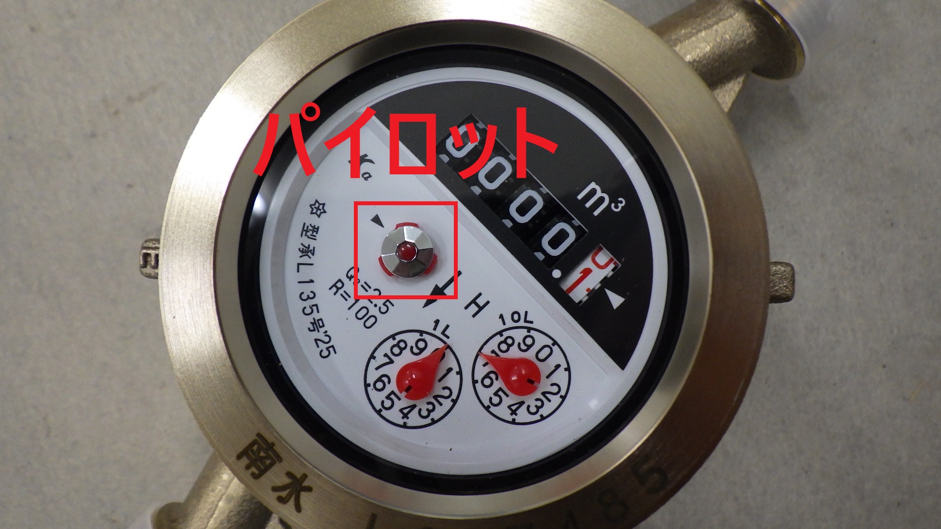メーターを見て確認できます。貯水タンクが満水の状態で水道の蛇口を全部閉めても「パイロット」が回転するときは水漏れの可能性があります。すぐに当企業団経営課までご連絡ください。